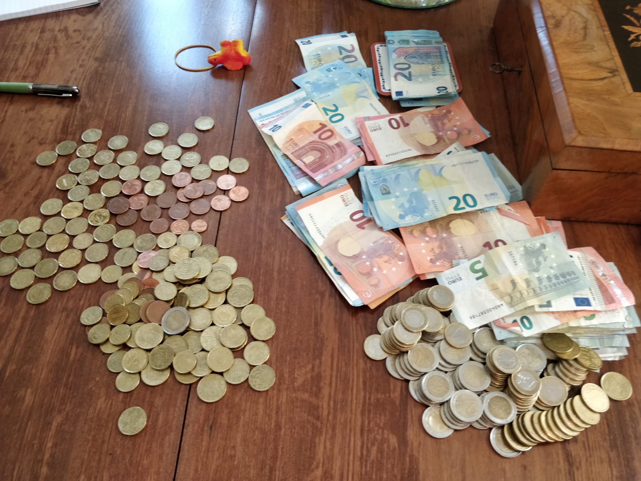 At 17:00 when the market was over, we set down and counted the raised money. Our crew consisting of Margot, Sophie, Christian, Prince and Jacqueline was able to raise EUR 501,35. All this money will be used to accomplish our first project.